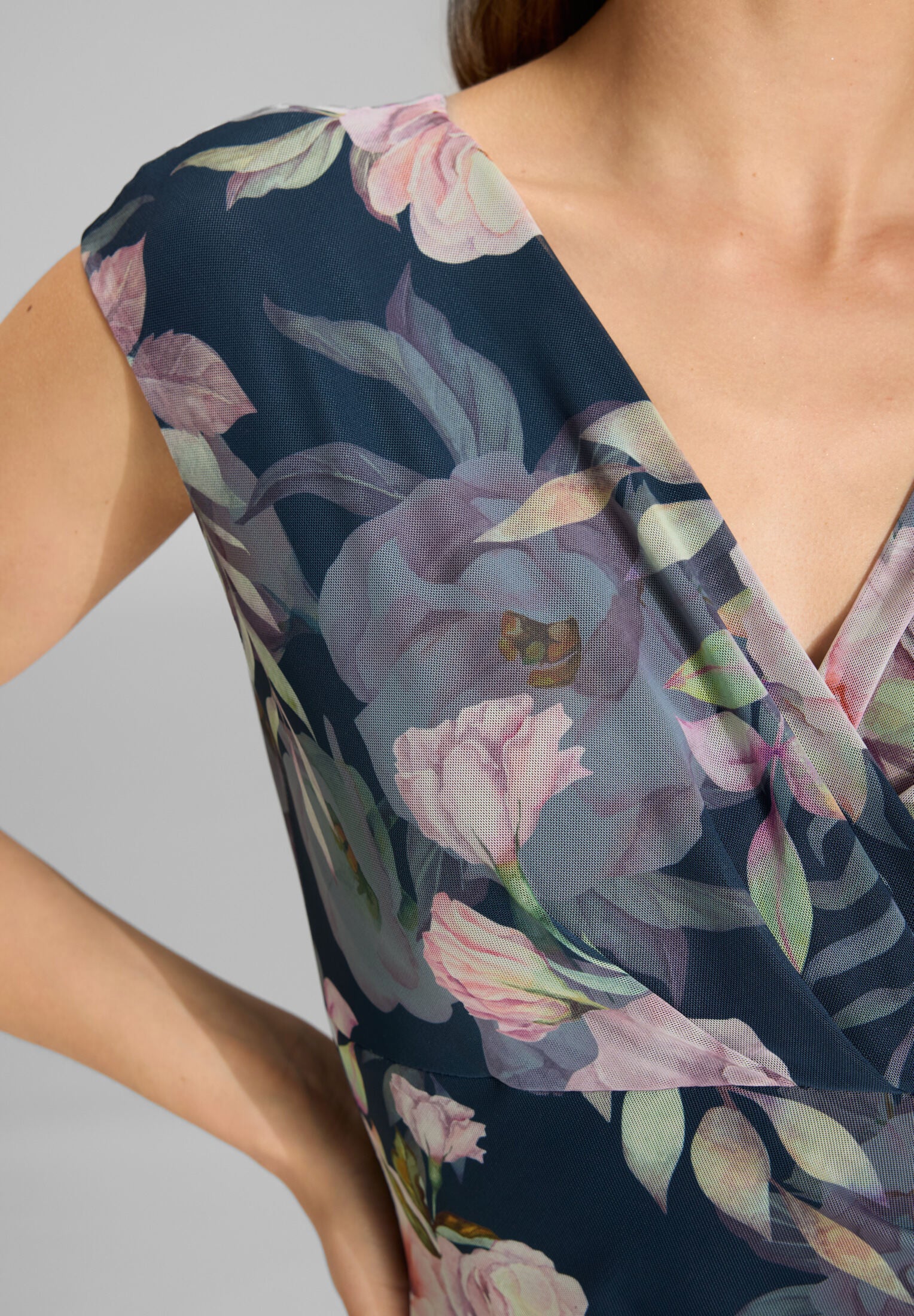 Etuikleid mit Wickel-Ausschnitt aus bedrucktem Mesh