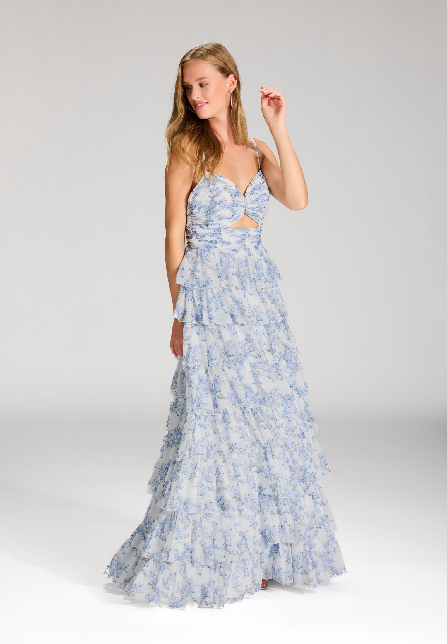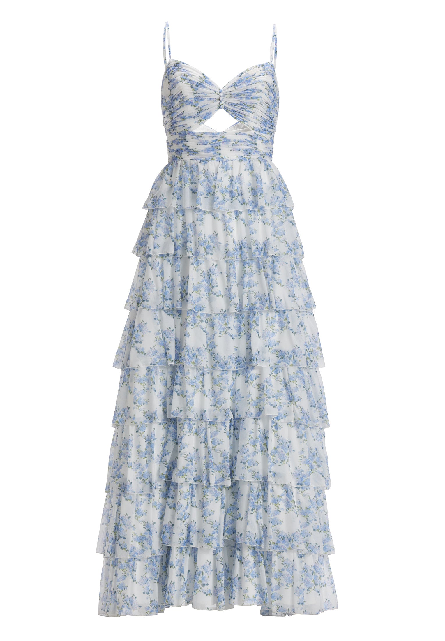 Printkleid mit Volantrock und Cut-out Detail
