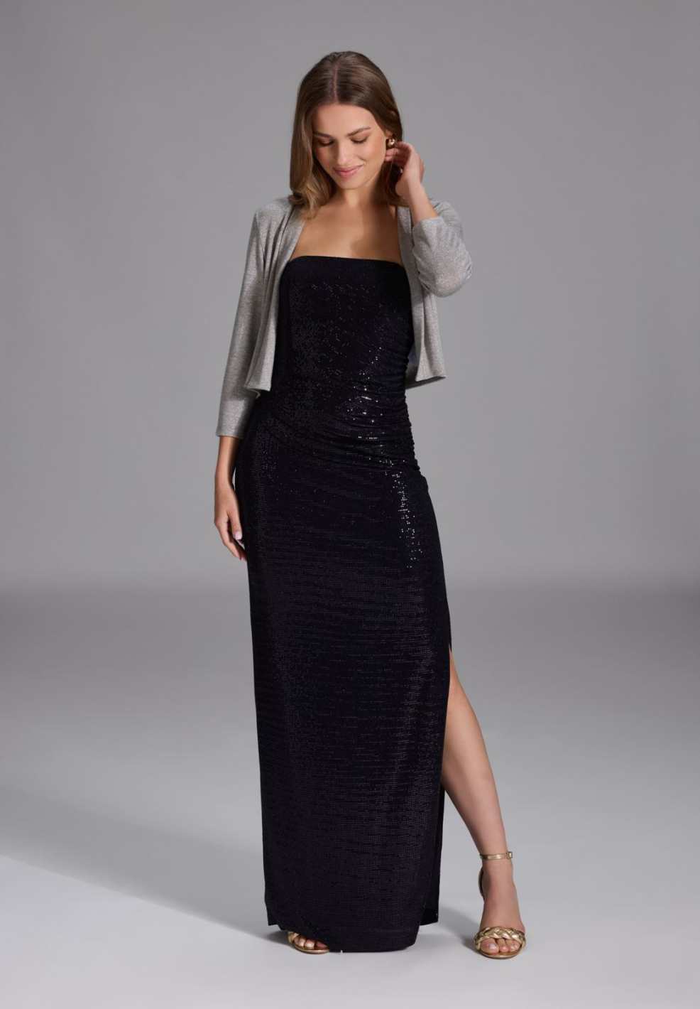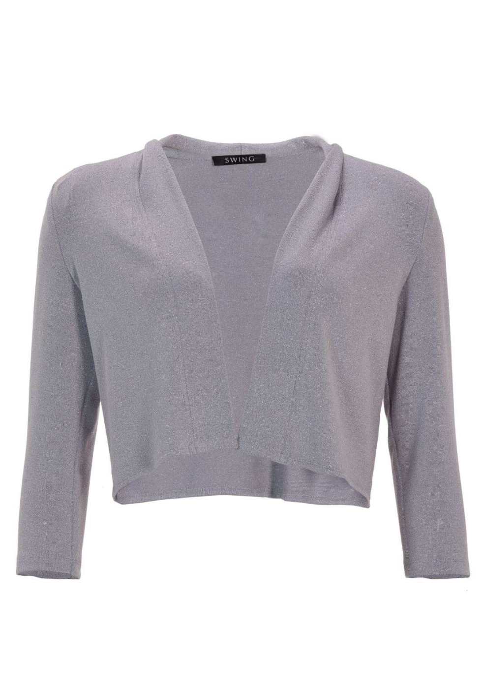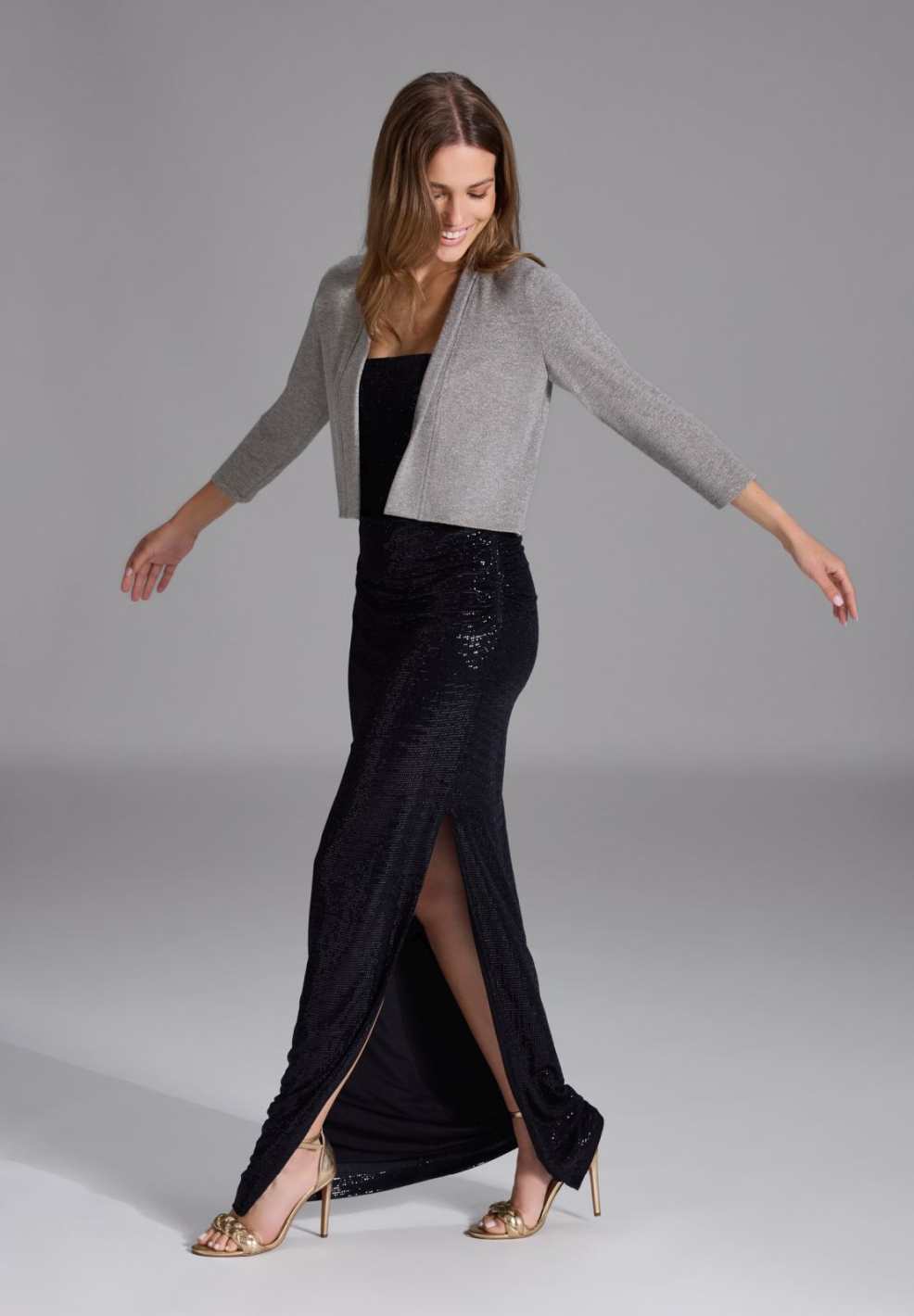 Der Bolero ist aus weichem, geschmeidigem Jersey mit glitzernden Fäden gefertigt.