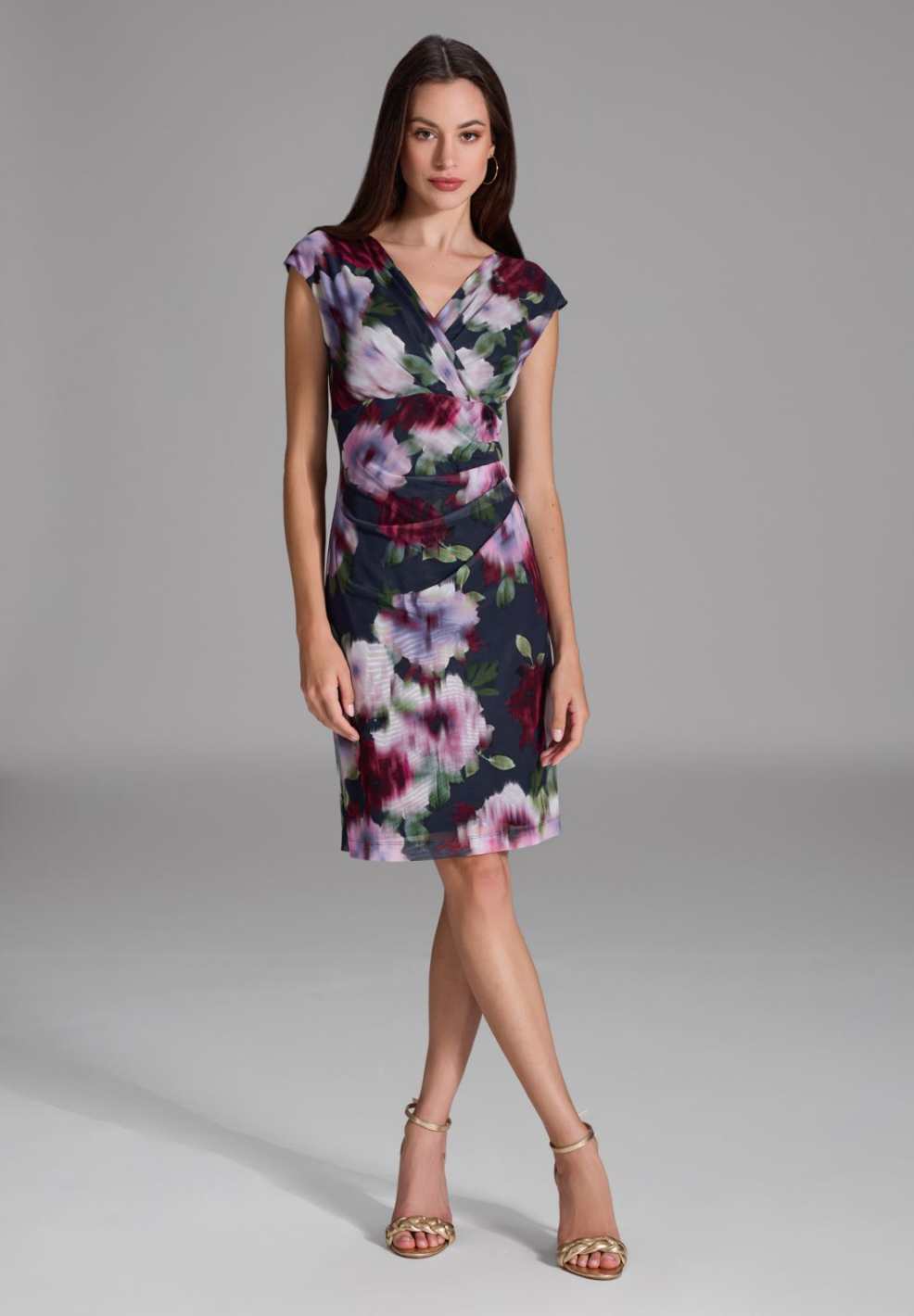 Etuikleid mit Wickel-Ausschnitt aus bedrucktem Mesh