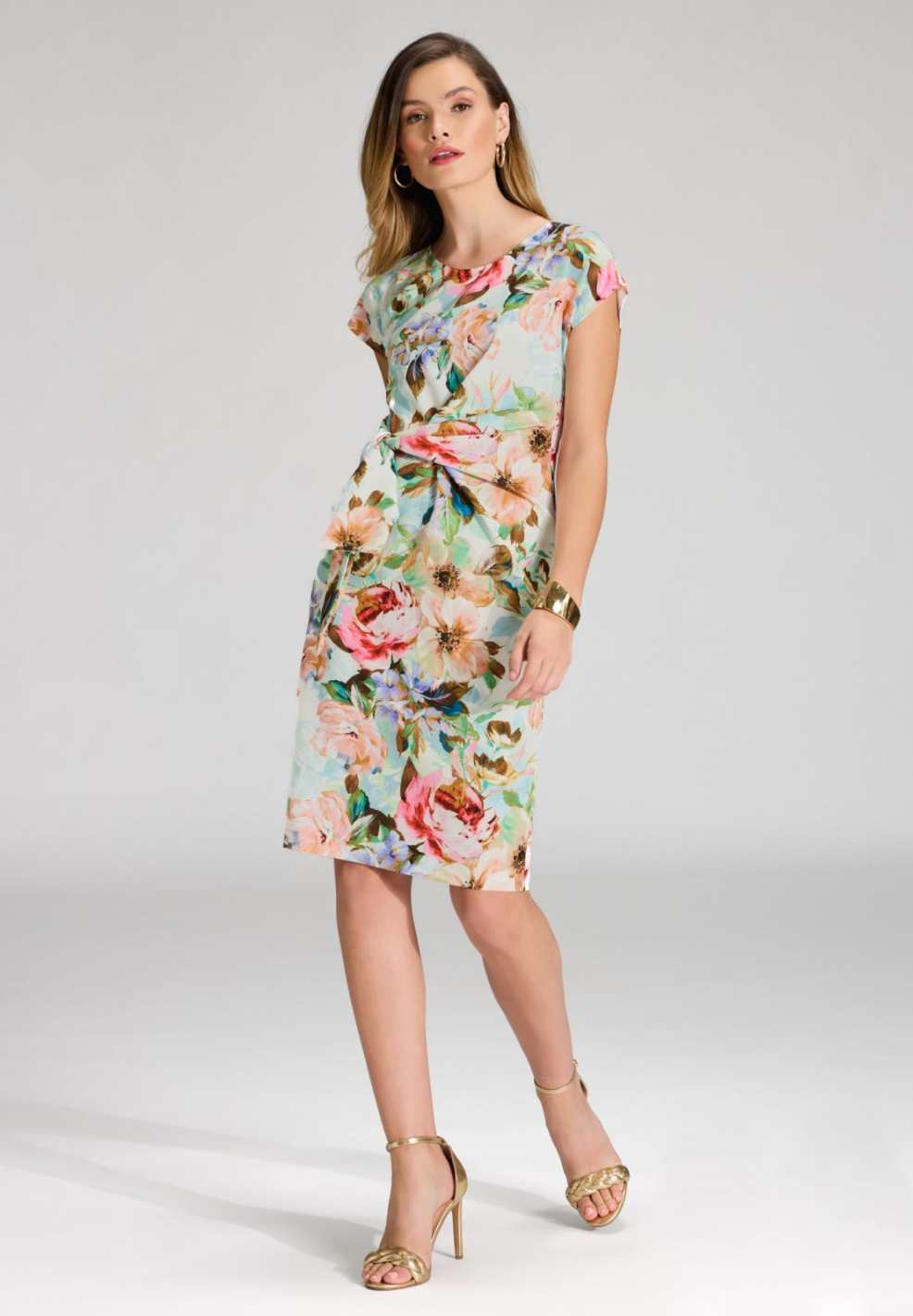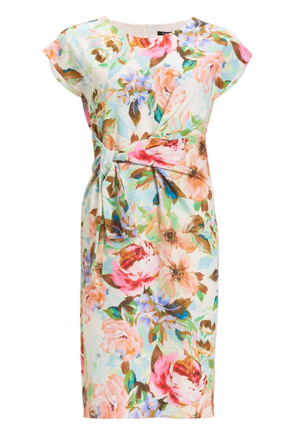Etuikleid mit Knotendetail aus leichtem Scuba mit Blumendruck