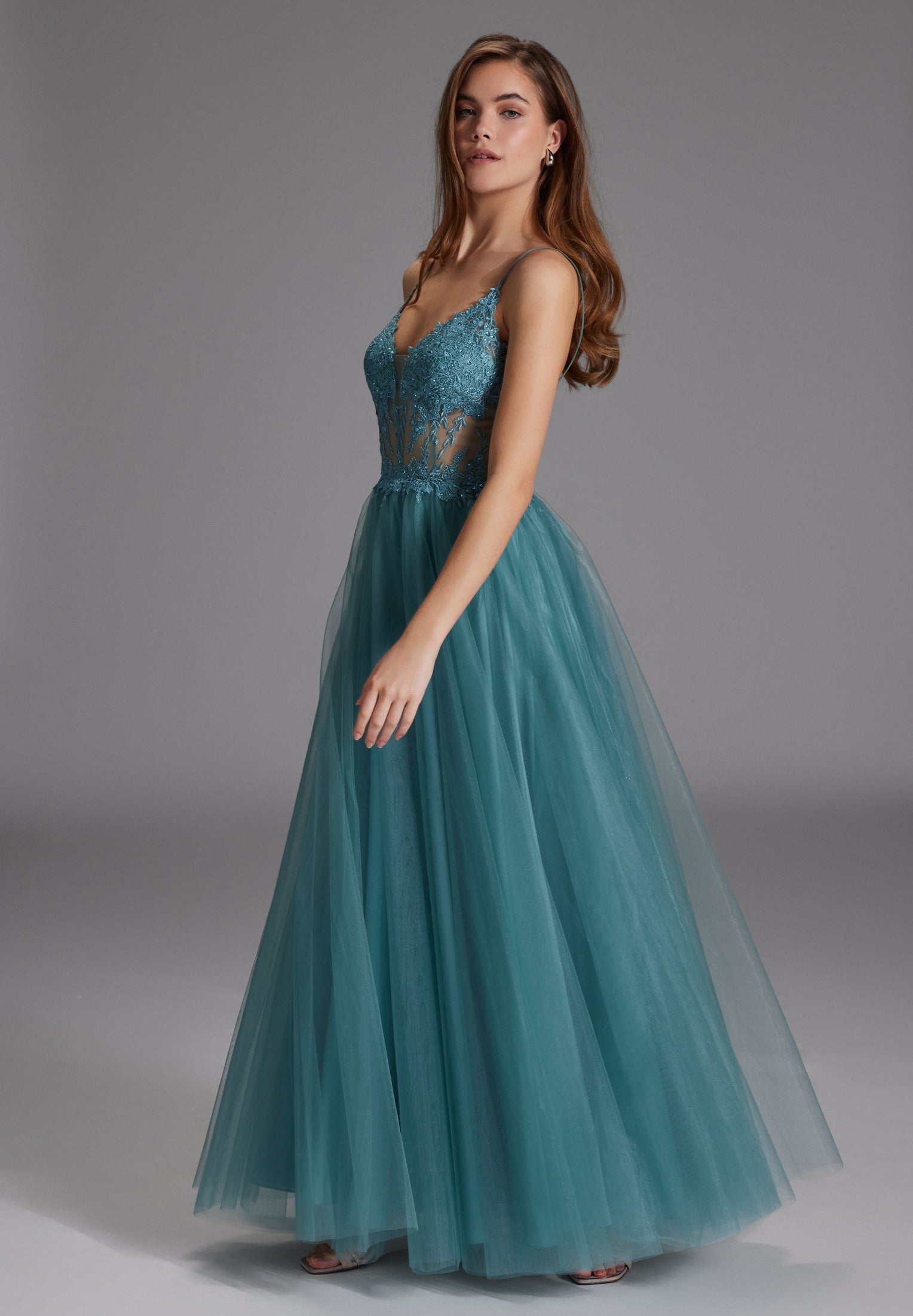 Ausgestelltes Tüllkleid mit Spitzenstickerei