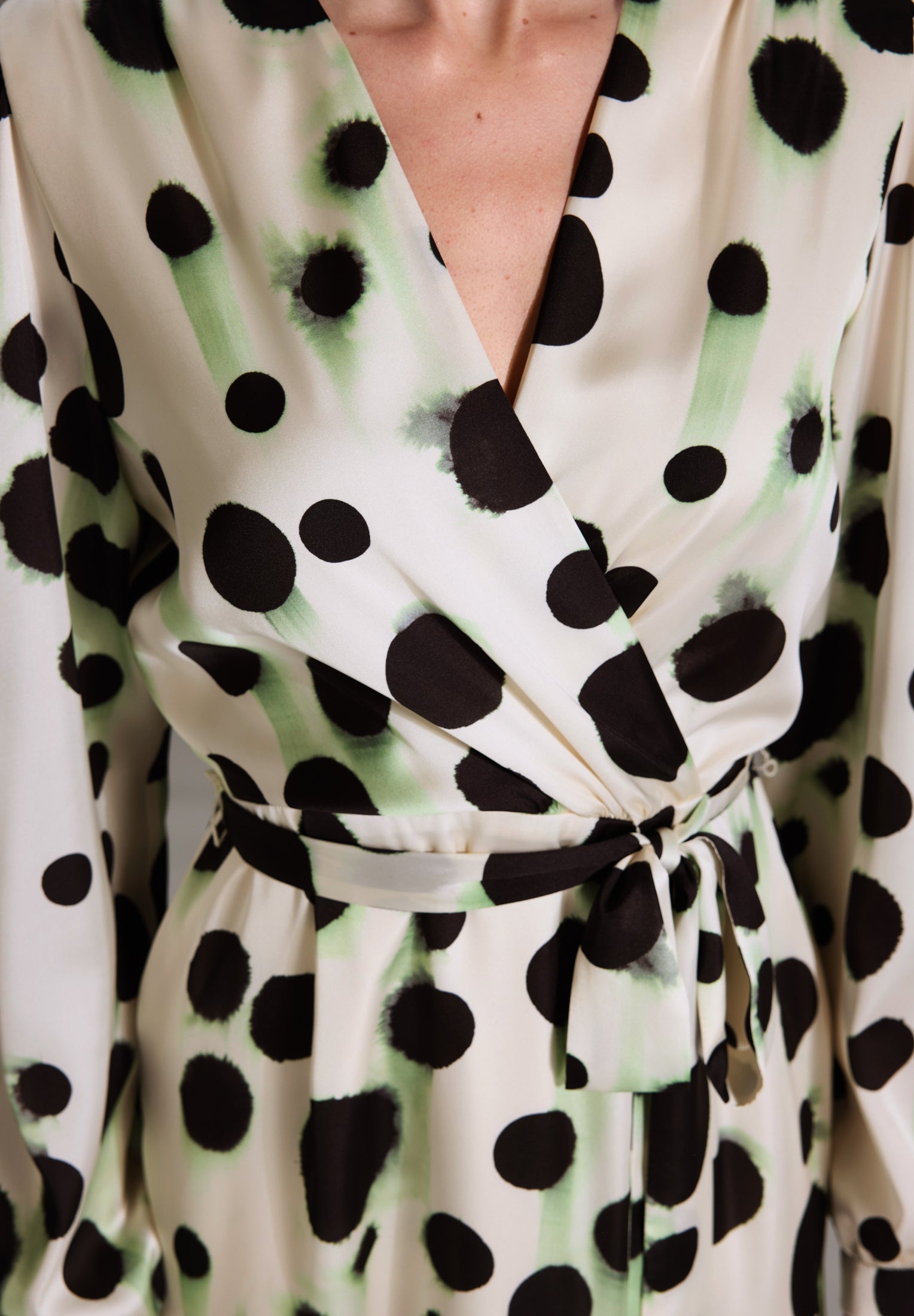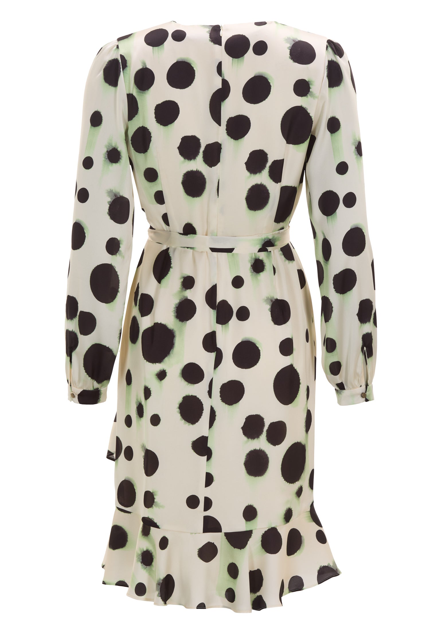 Cocktail Kleid mit Volant Saum aus Satin mit Tupfen Druck