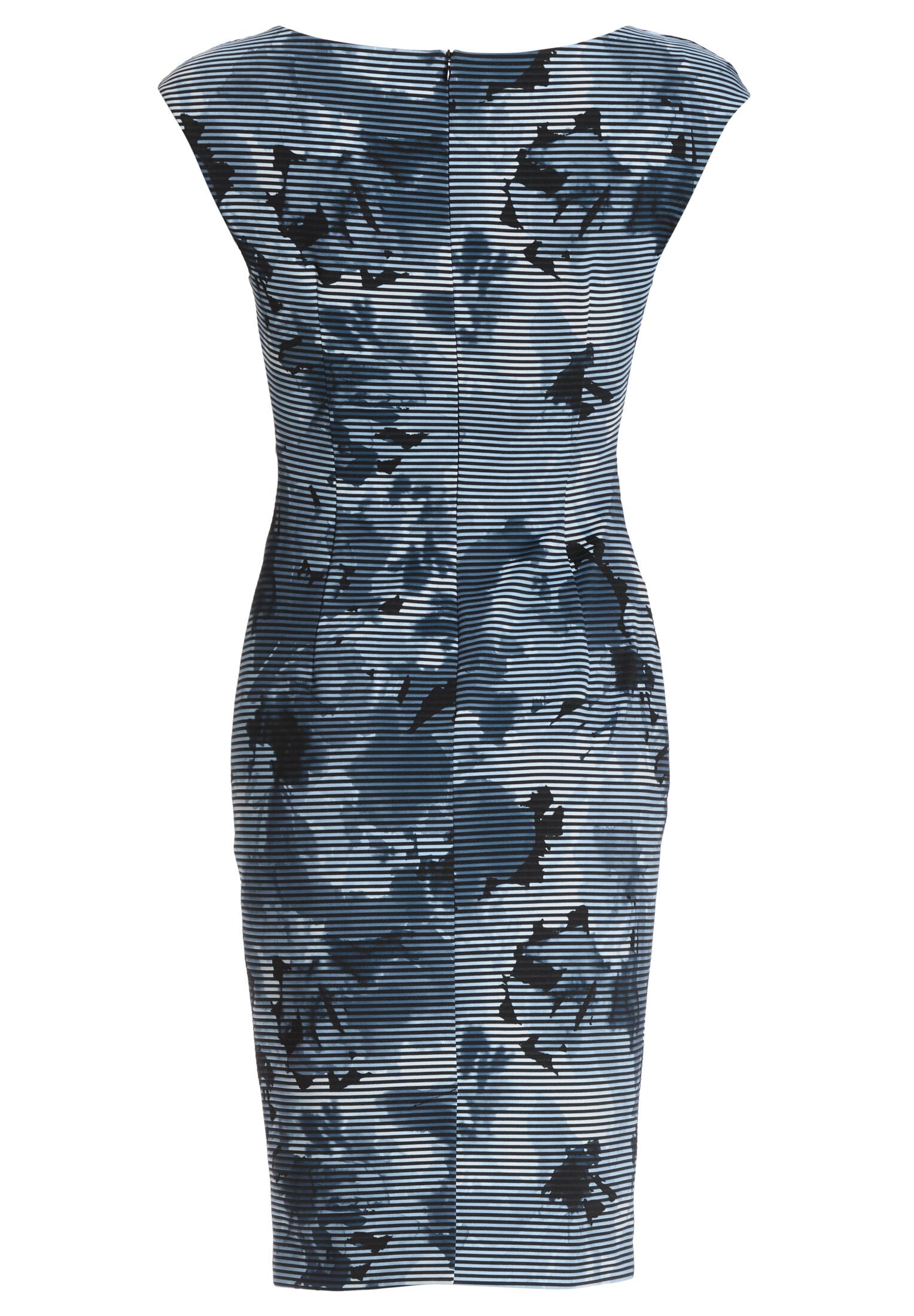 Etui Kleid aus bedrucktem Ottoman mit Drapierung