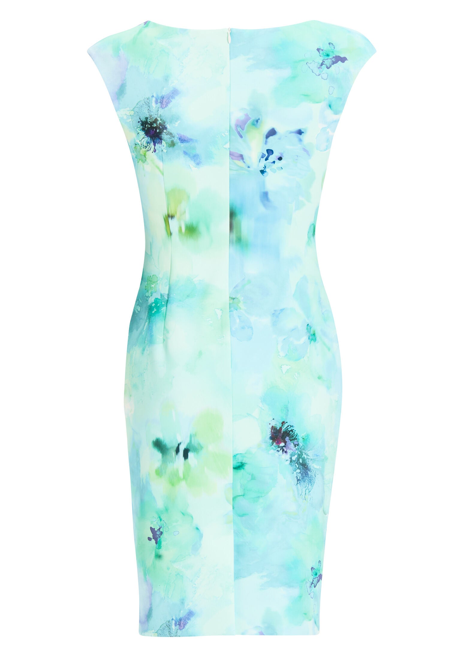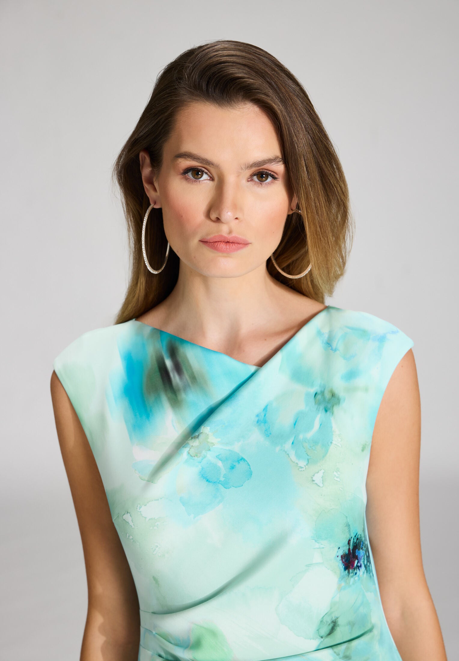 Etuikleid aus bedrucktem Scuba mit Drapierung