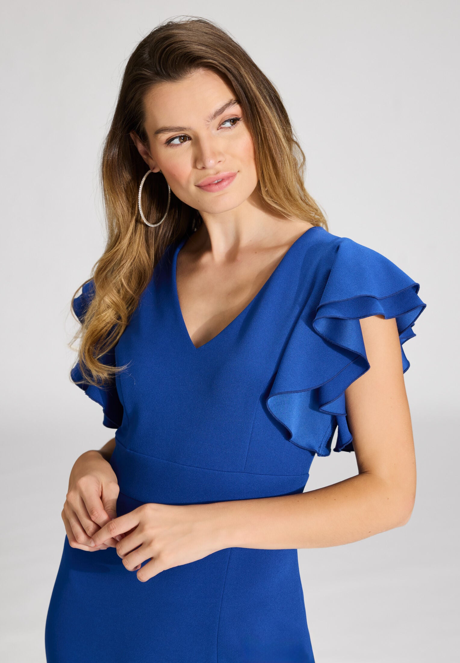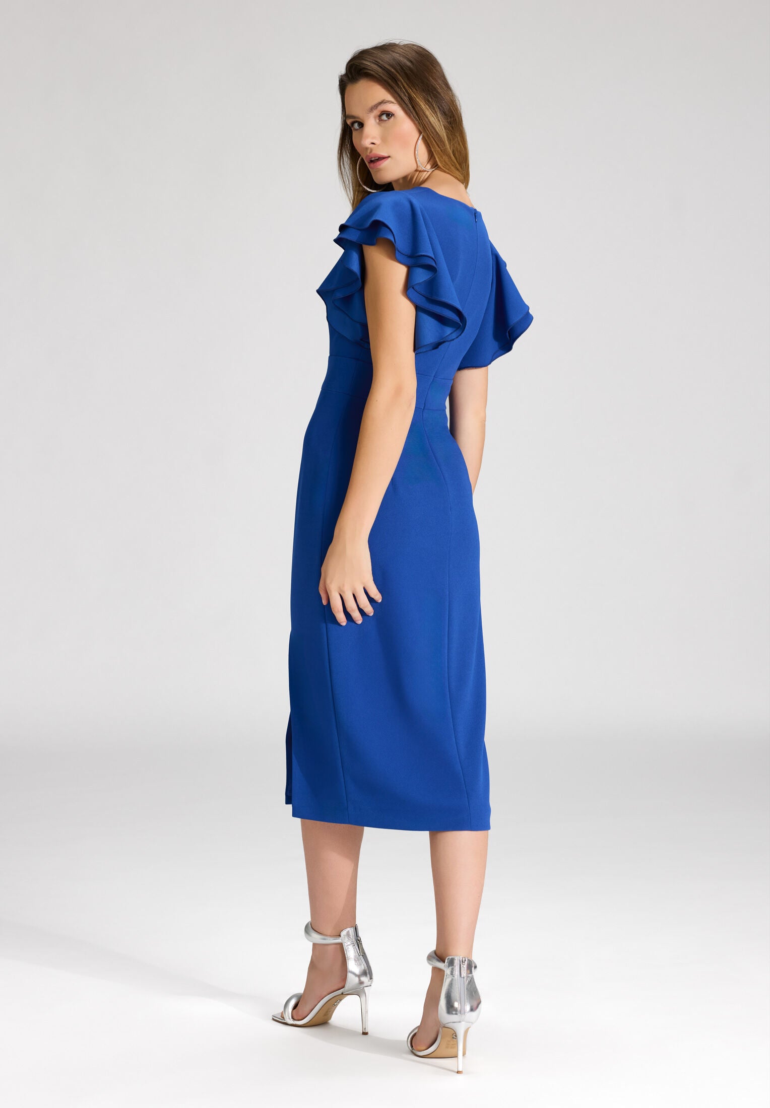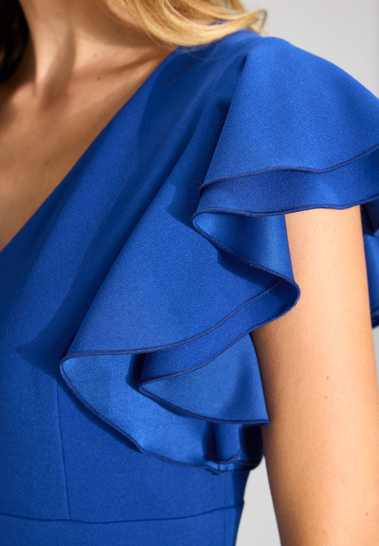 Etuikleid aus Crepe Jersey mit Volant Ärmeln