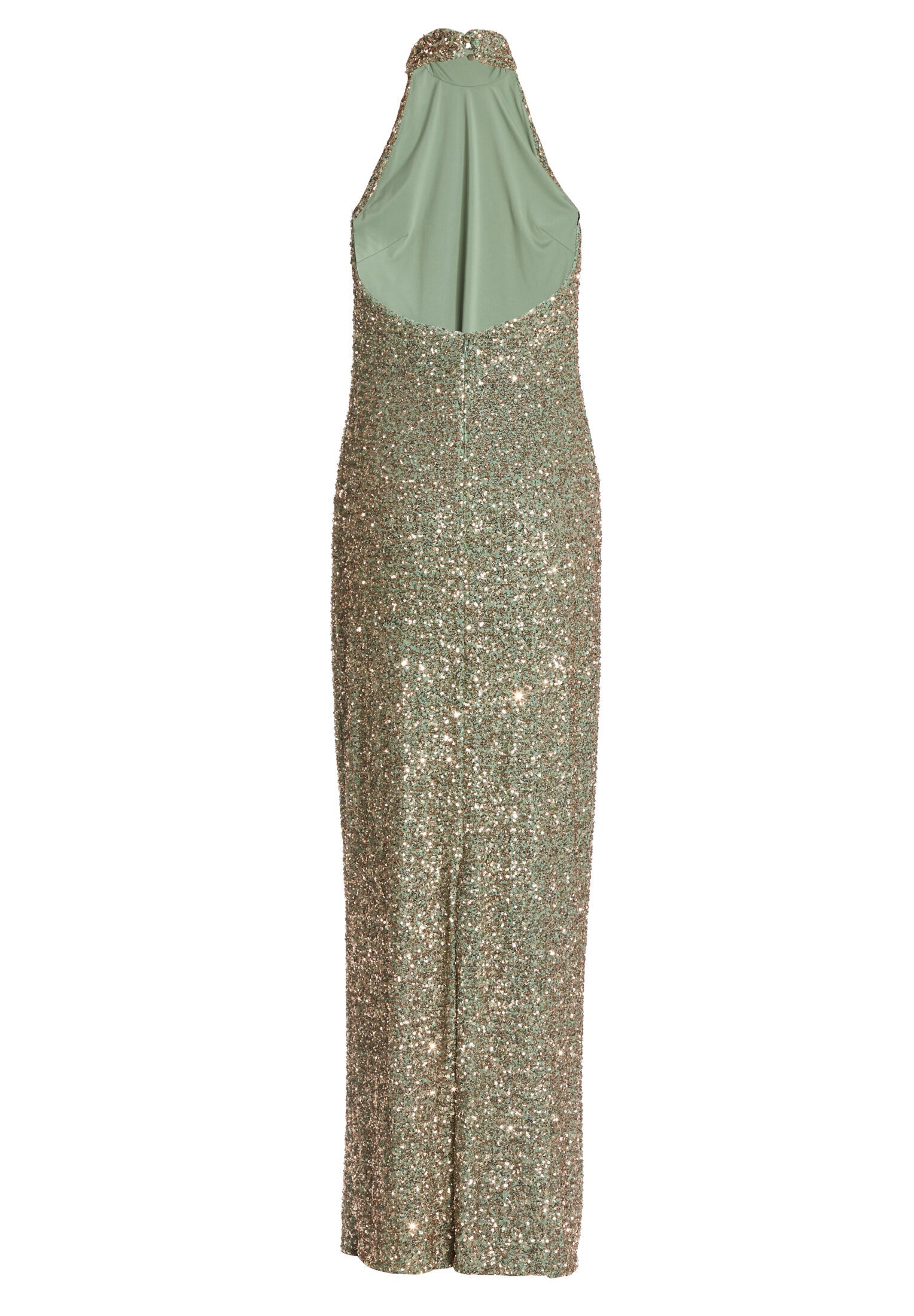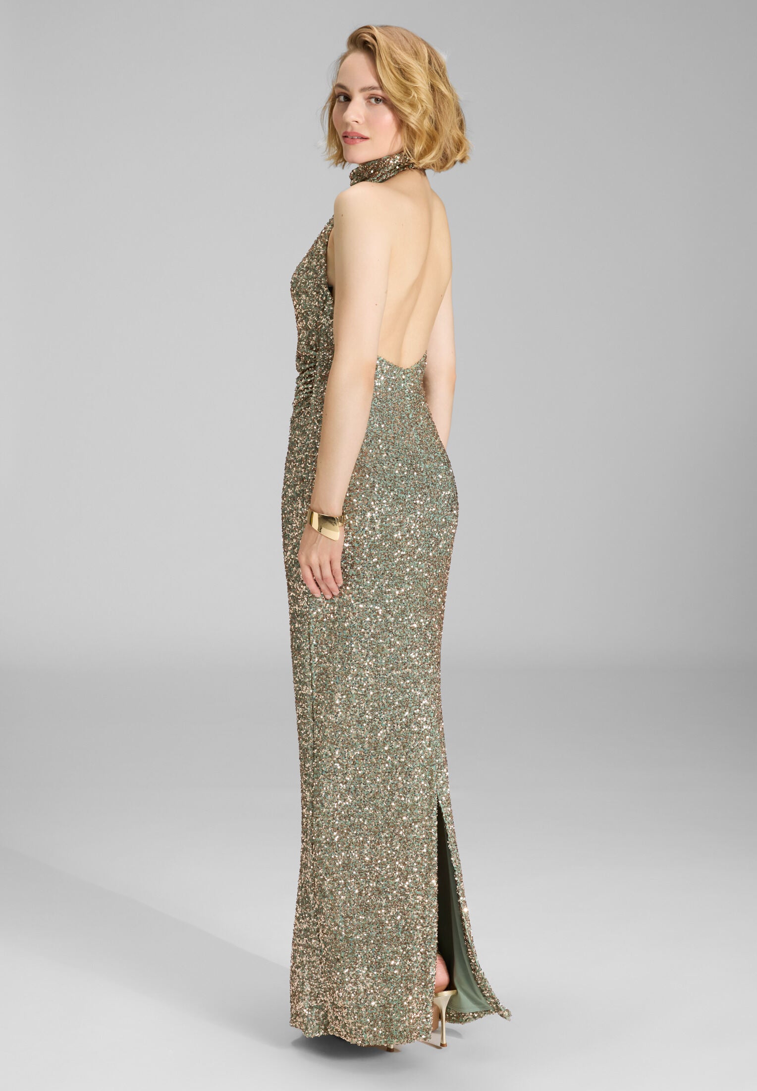 Figurbetontes Paillettenkleid mit Drapierung am Kragen