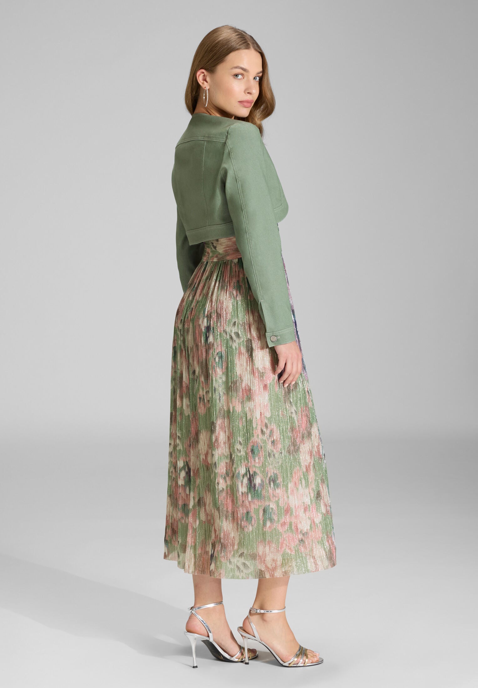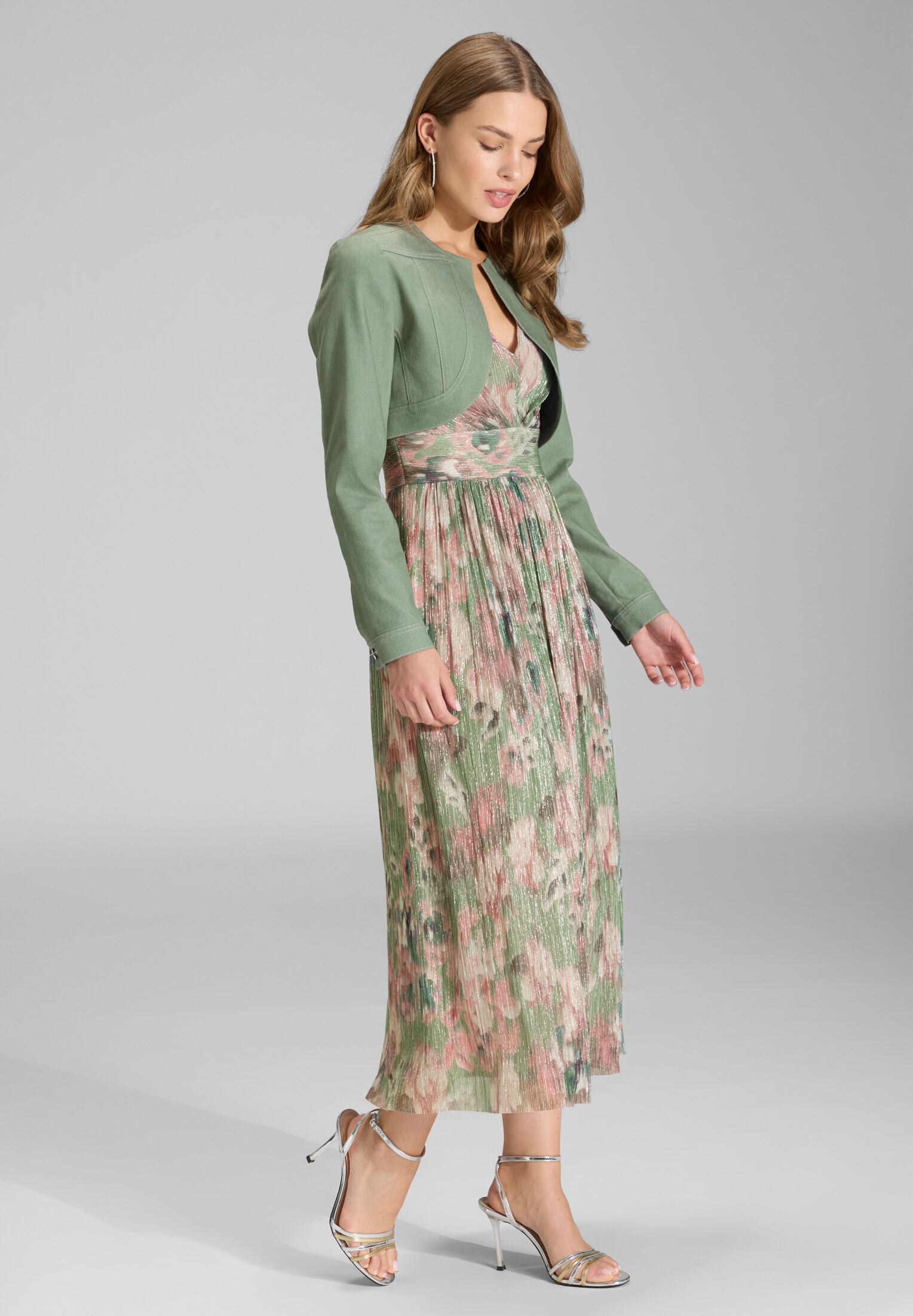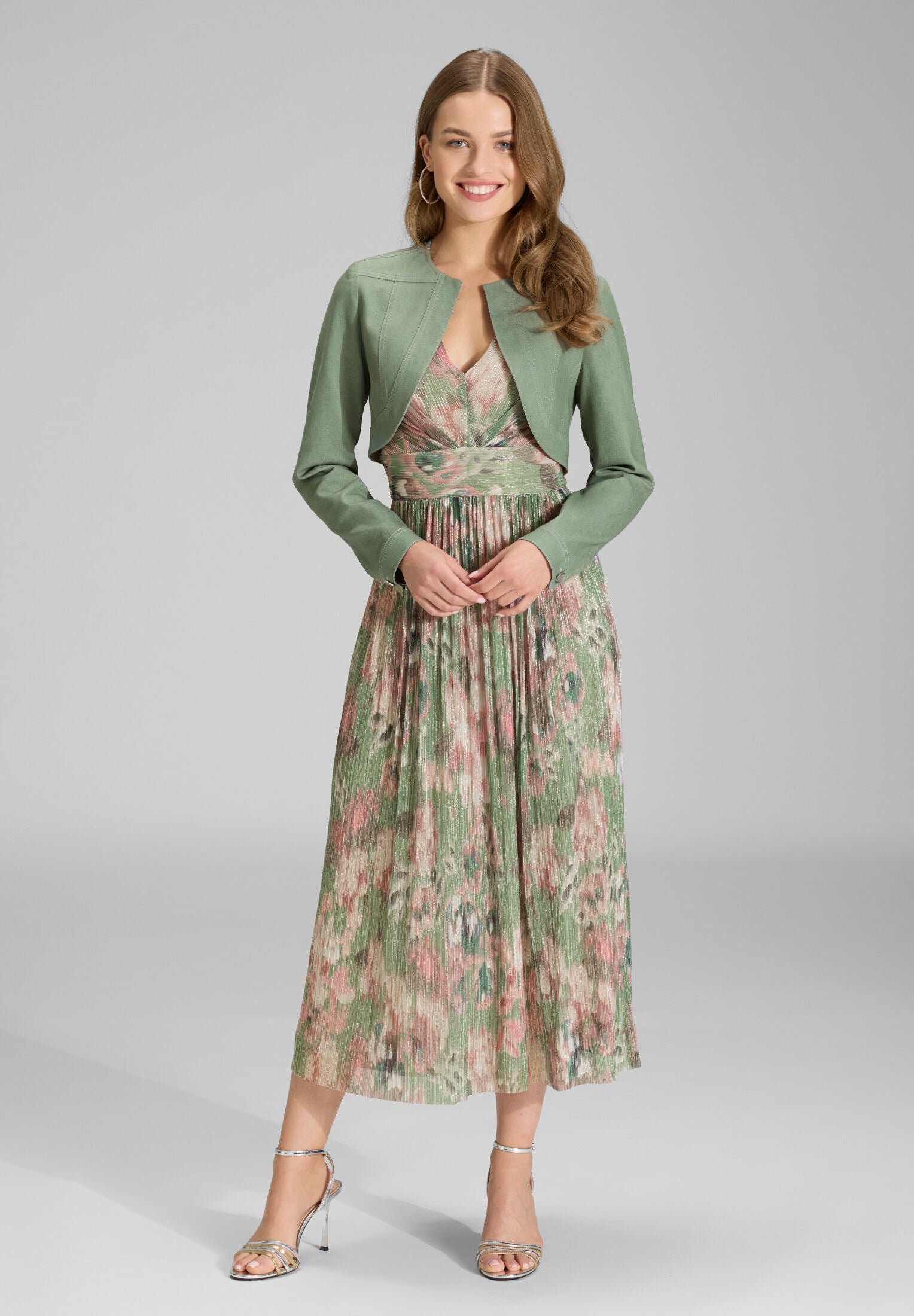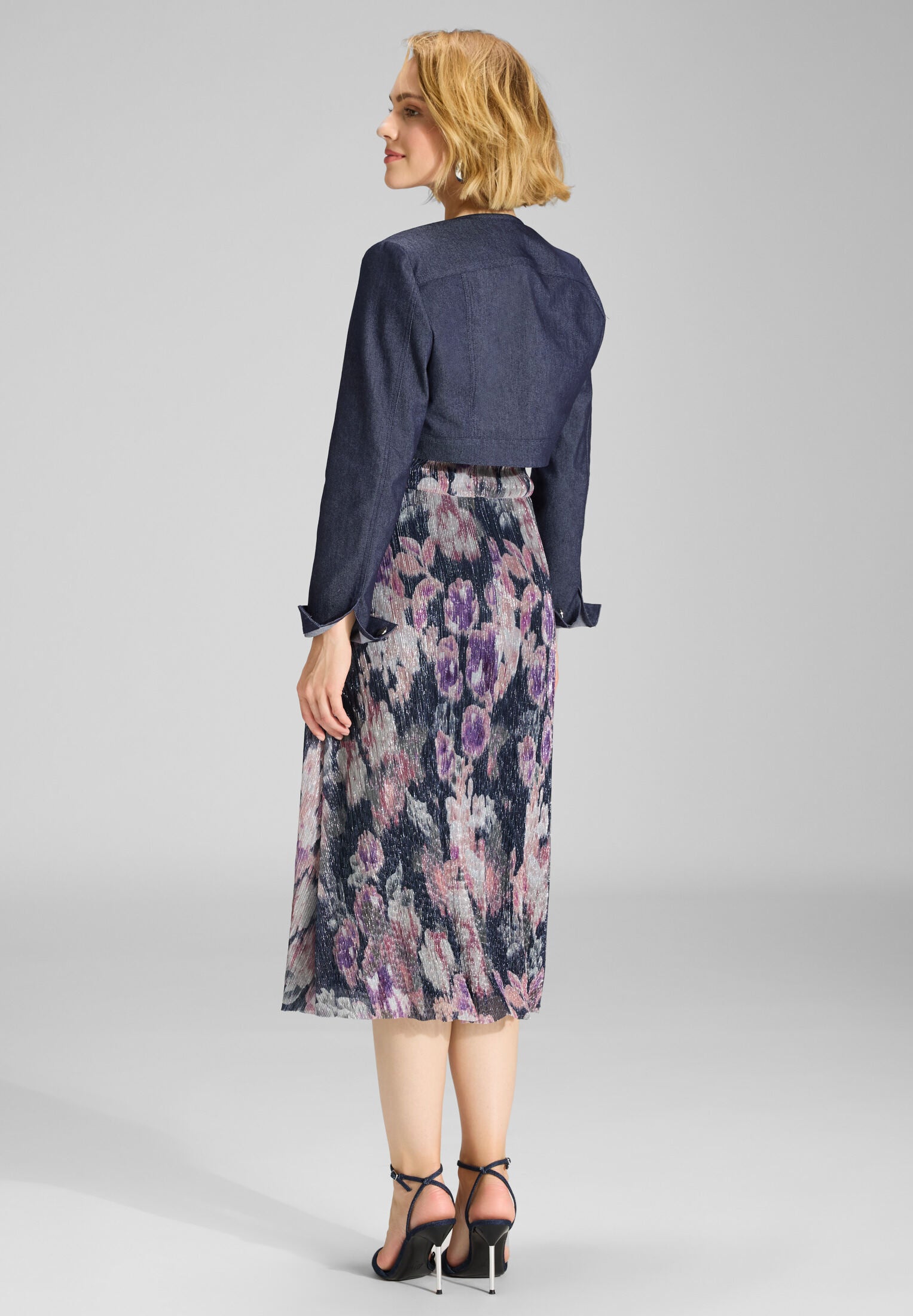 Schlichter Bolero mit klarer Linienführung – perfekt, um Deinem festlichen Outfit einen modernen Twist zu verleihen. Der strukturierte Schnitt mit rundem Ausschnitt und ausgestellten Ärmeln passt ideal zu Kleidern und Jumpsuits. Ob zur Hochzeit oder zum b