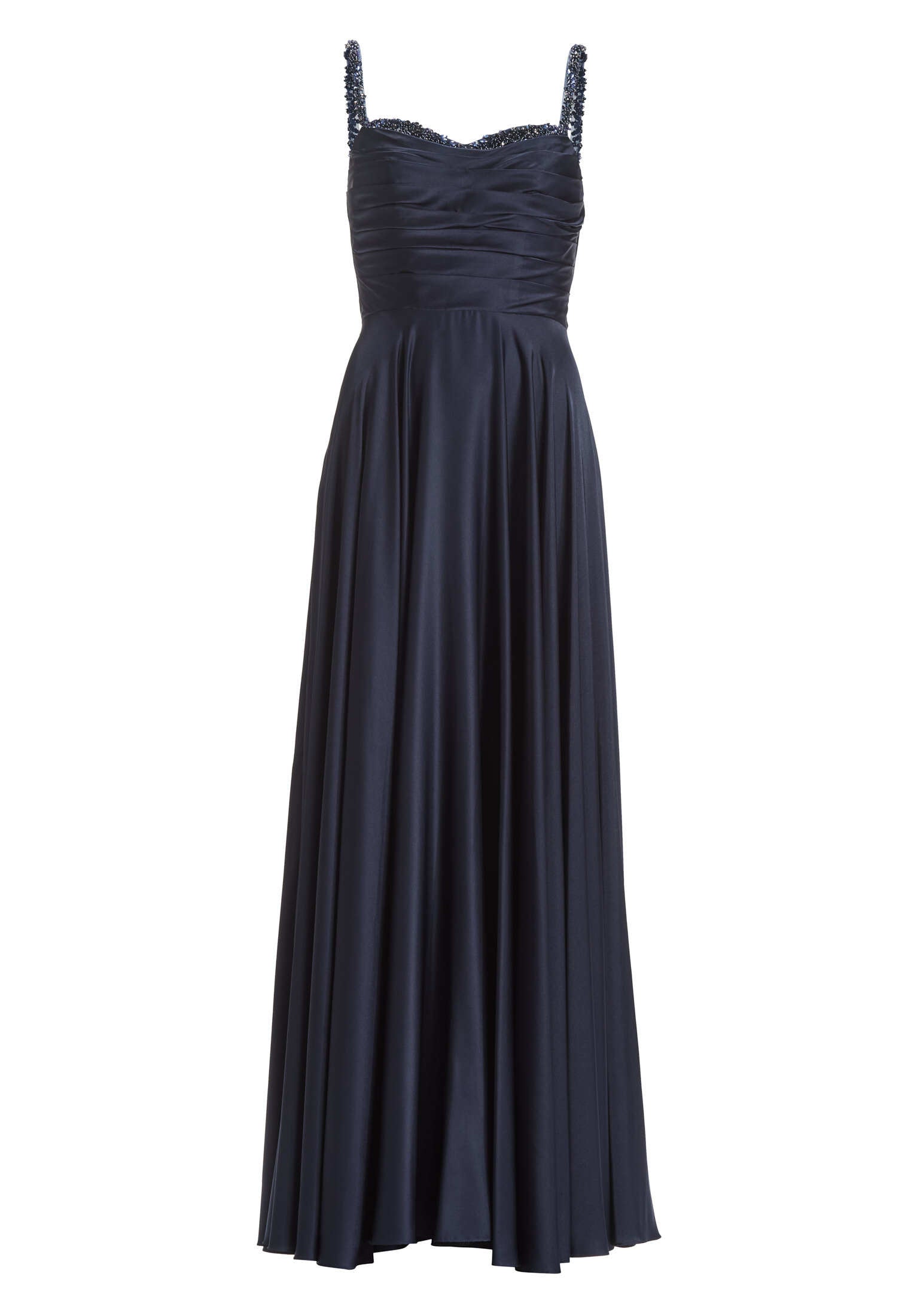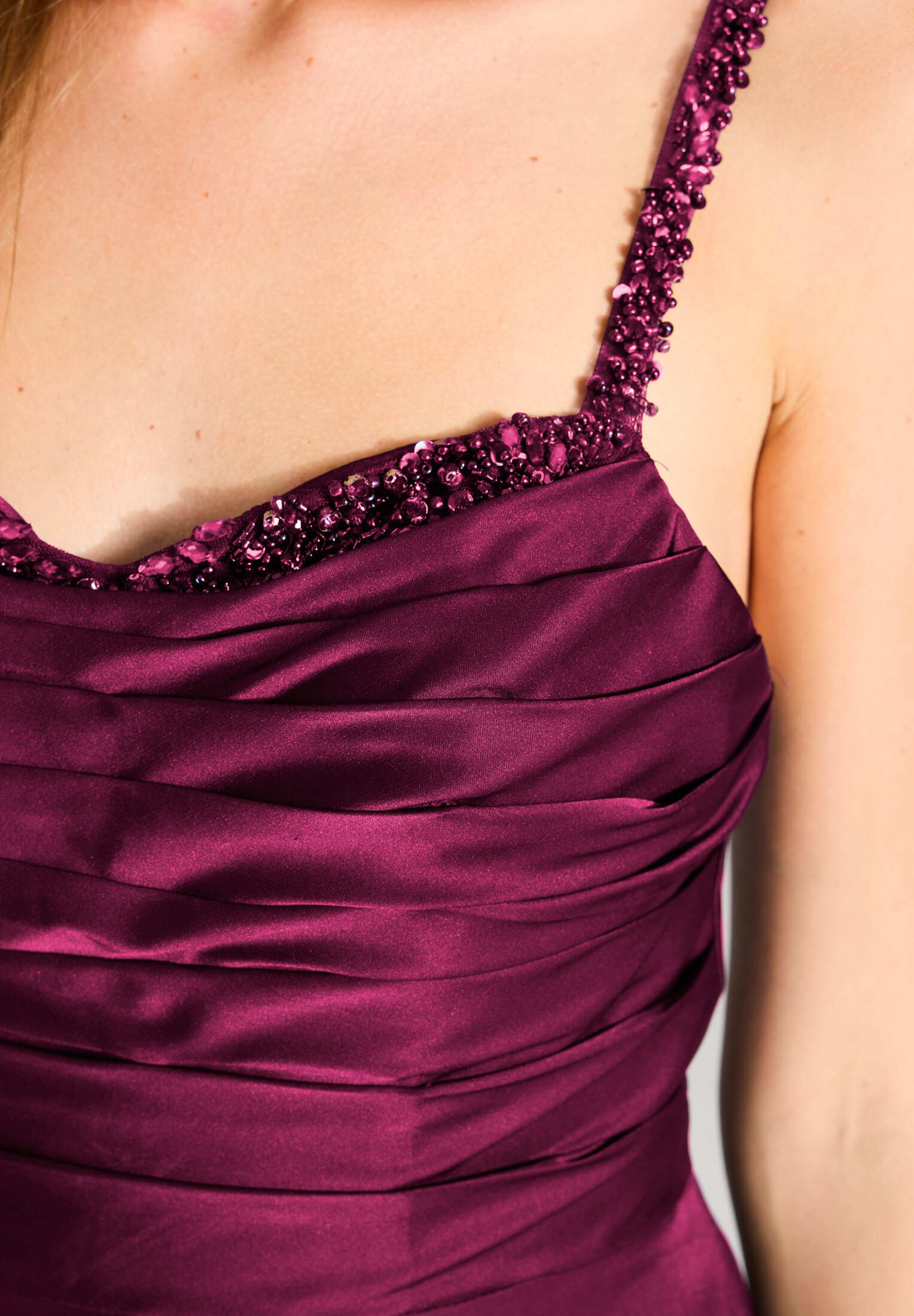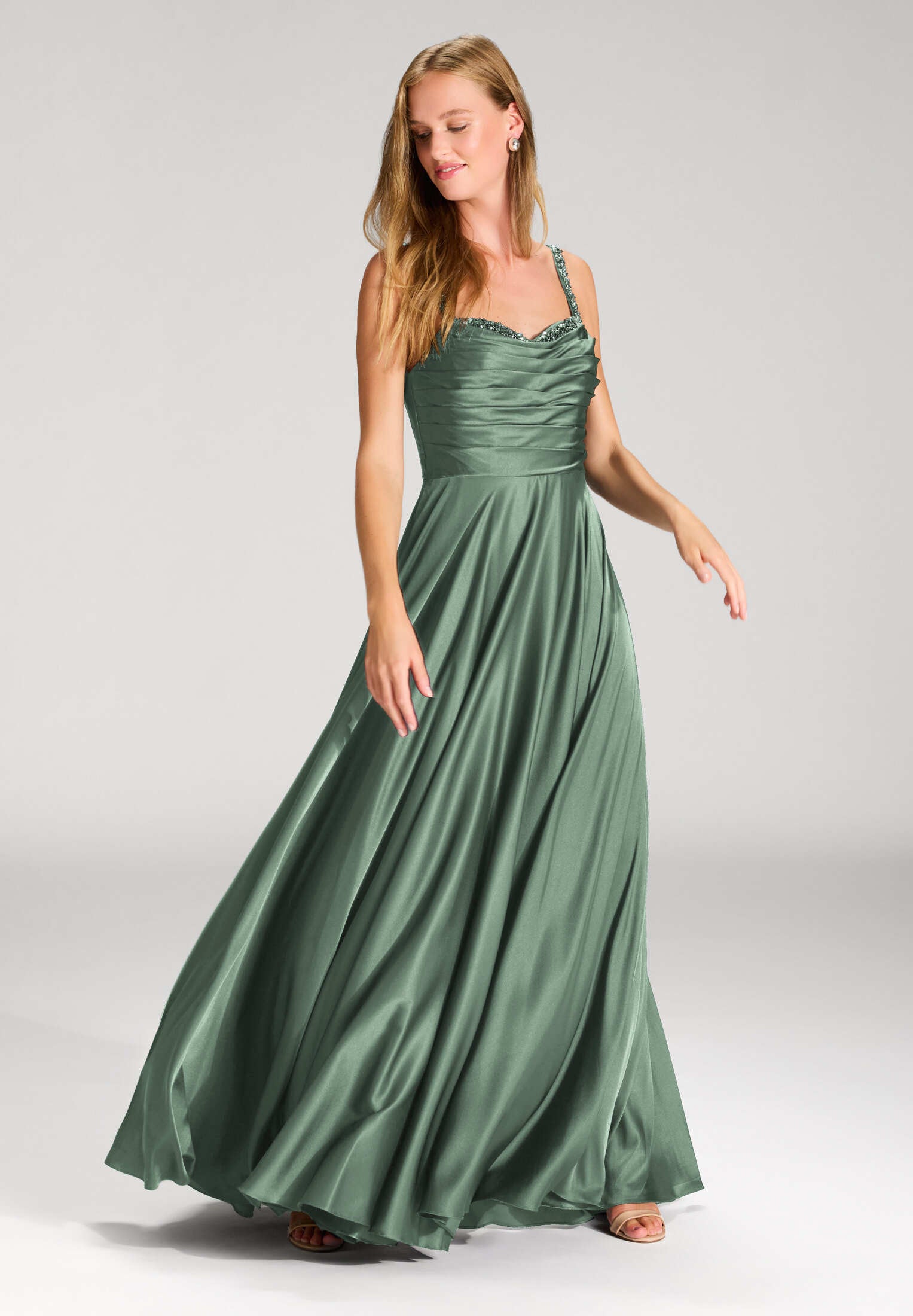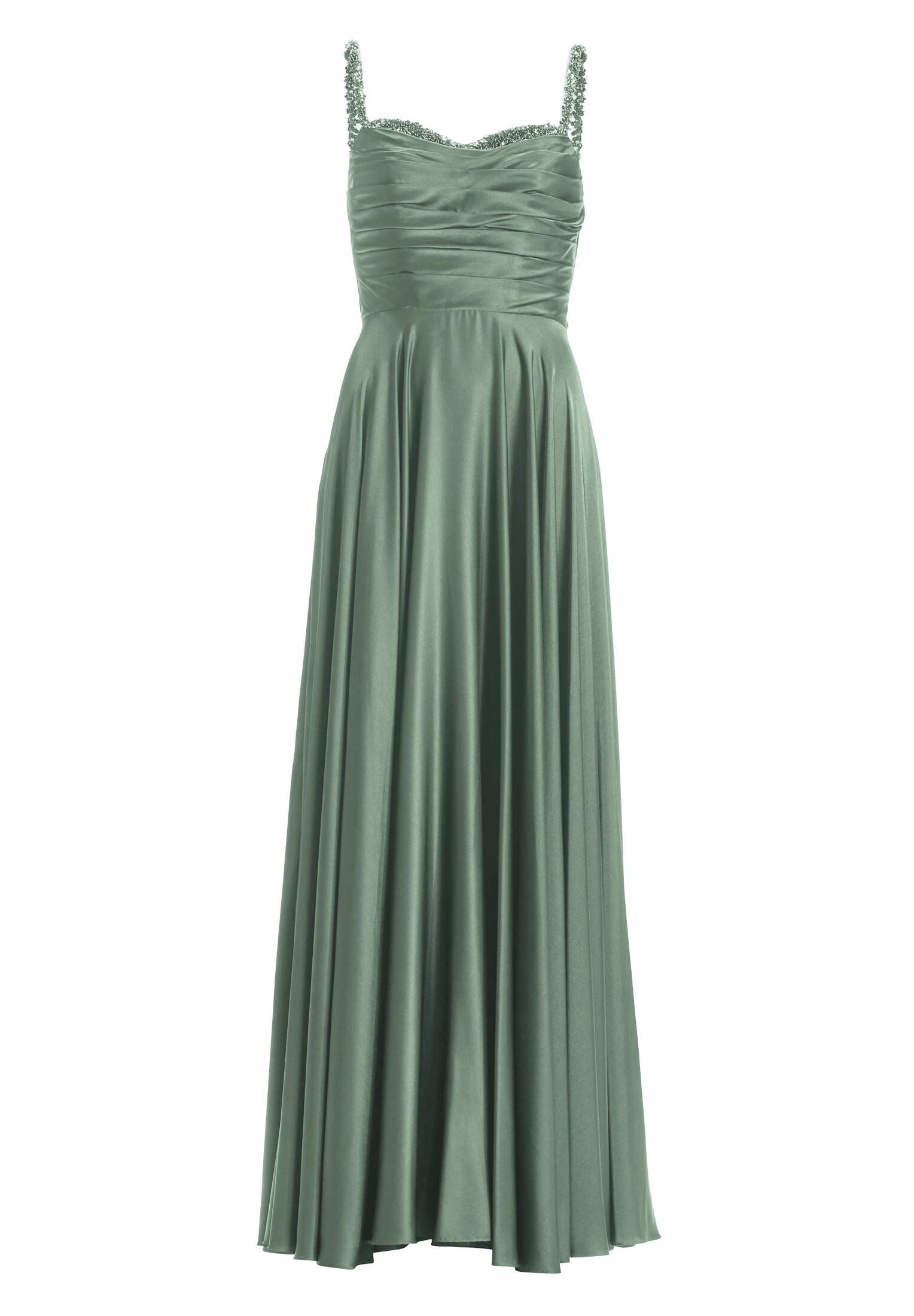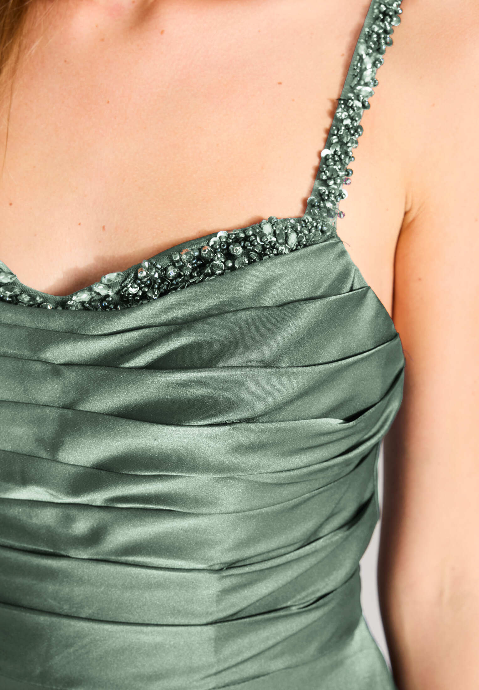 Satinkleid mit drapiertem Top und bestickten Trägern