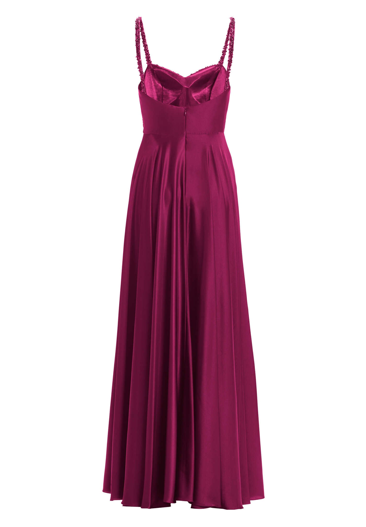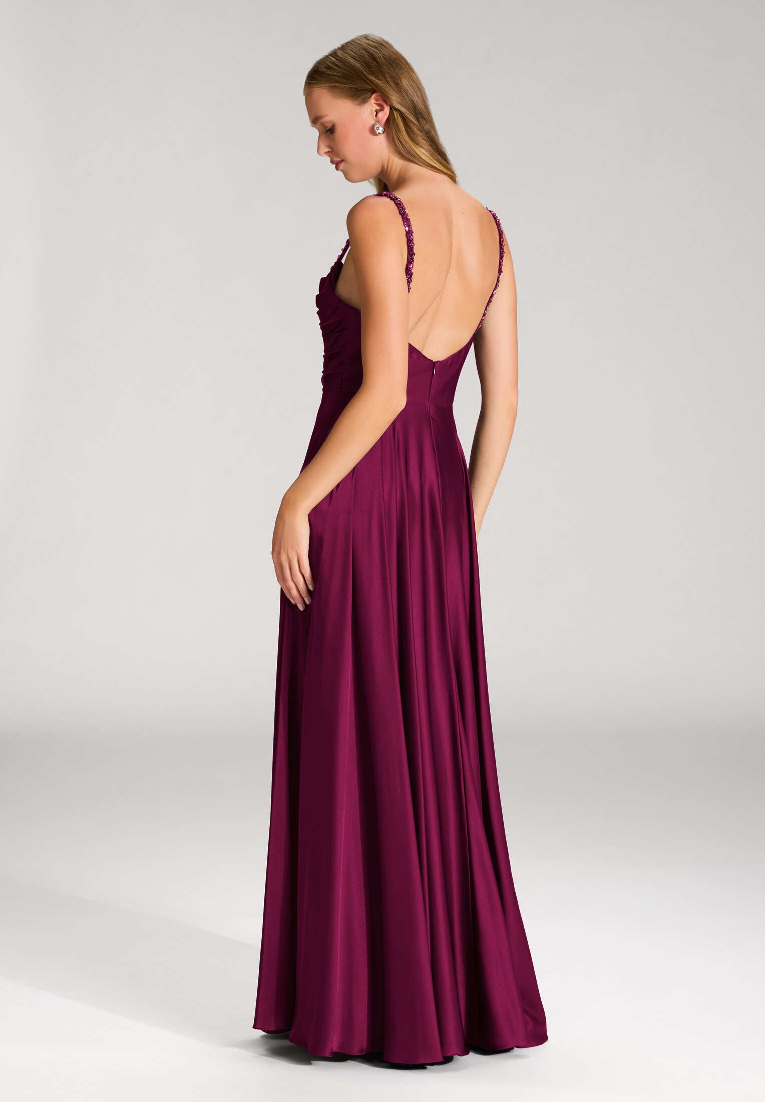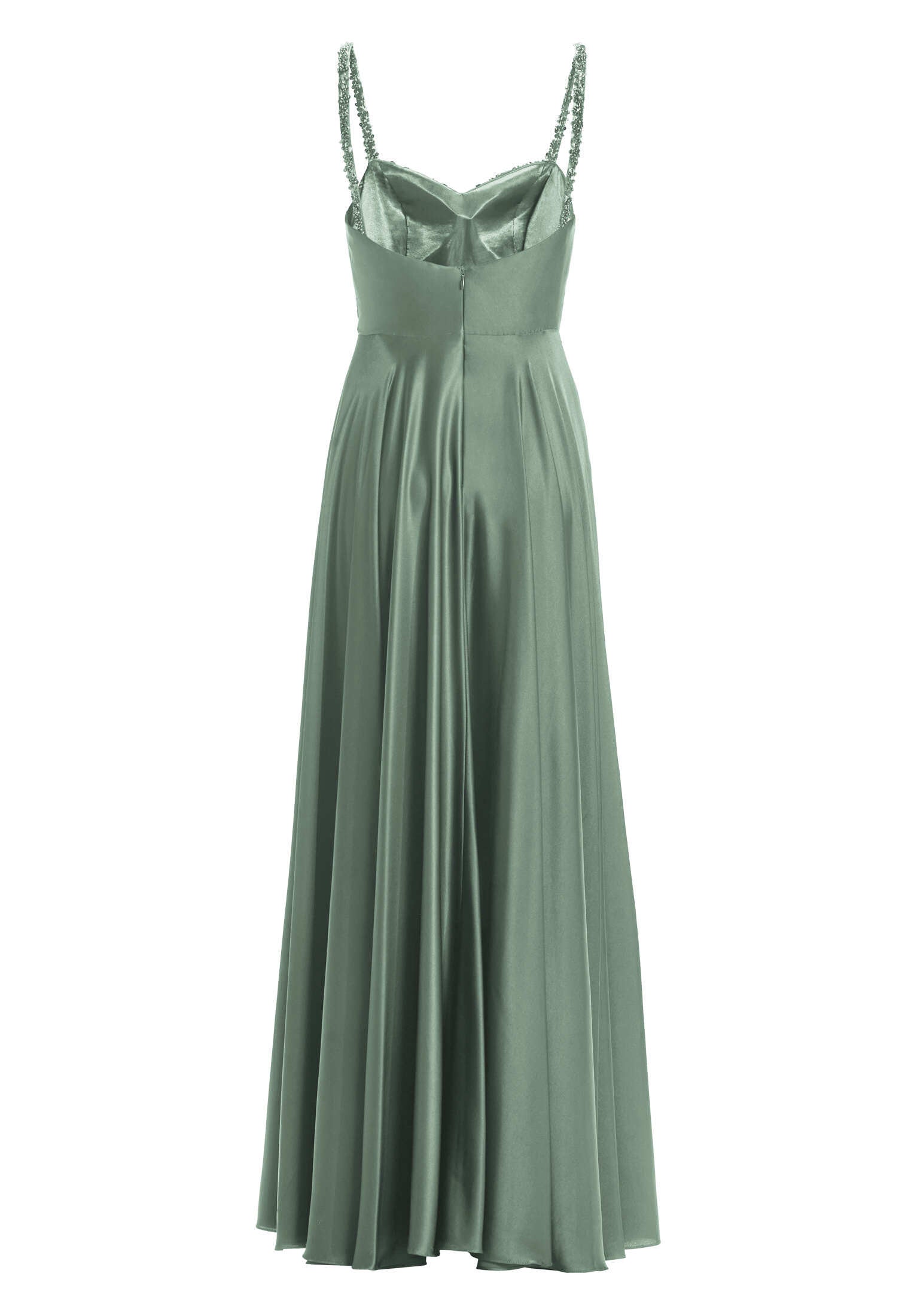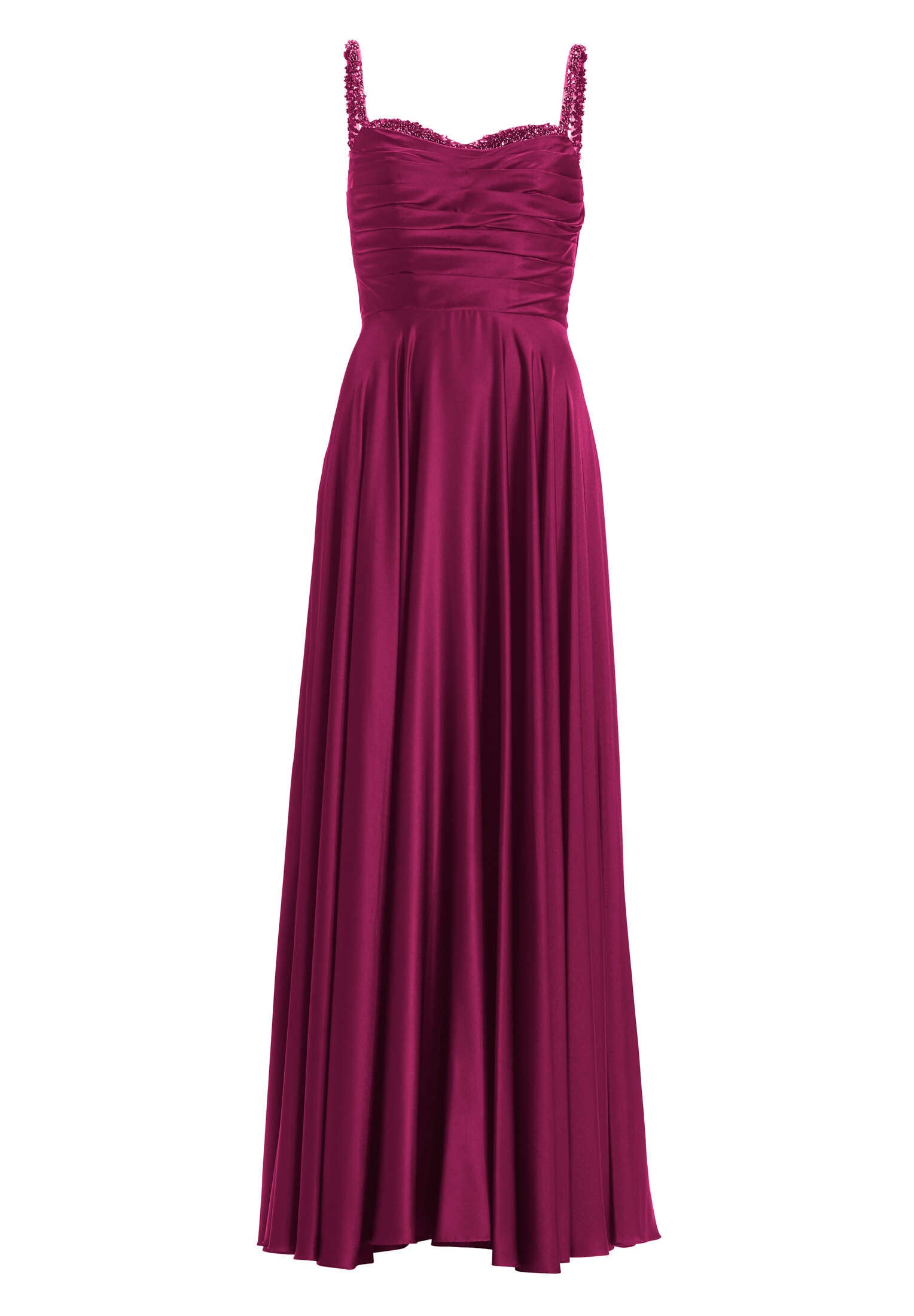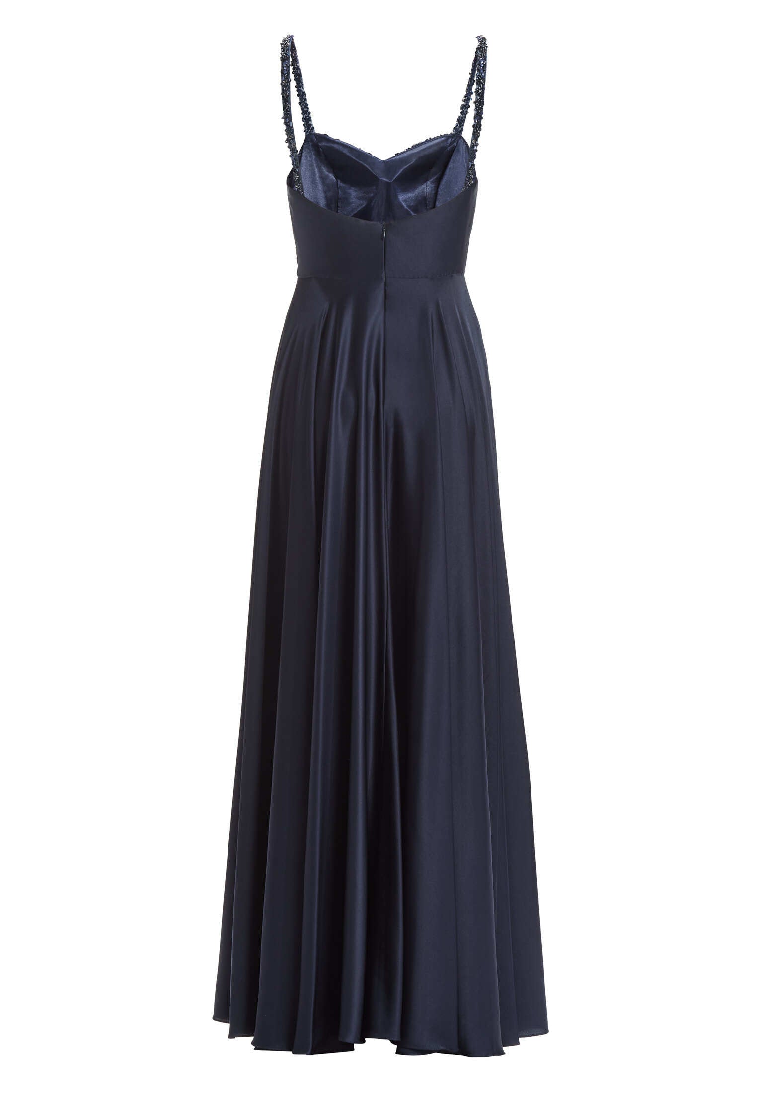 Satinkleid mit drapiertem Top und bestickten Trägern